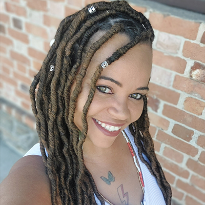 Mulher Negra, Lésbica, Quilombola, de Axé! Pedagoga, Mestre em Gestão Social. Ativista pela Educação da Rede Malala Found e Coordenadora Executiva do Nzinga -Coletivo de Mulheres Negras. Conselheira de Desenvolvimento Econômico Social e Sustentável do Governo Federal.